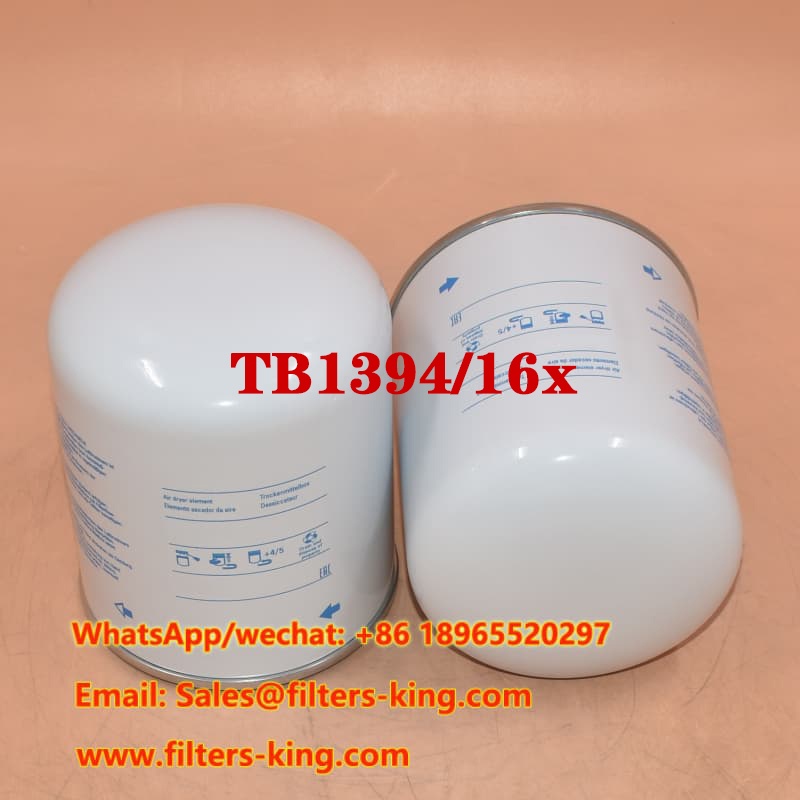 Le Filtre pour sécheur d'air Mann TB1394/16x Il s'agit d'un filtre déshydrateur d'air à visser haute efficacité, conçu pour les véhicules commerciaux et les machines agricoles. Ce filtre est conçu pour éliminer efficacement l'humidité, les aérosols d'huile et les contaminants solides des systèmes d'air comprimé, contribuant ainsi à protéger les systèmes de freinage pneumatique et les composants pneumatiques.